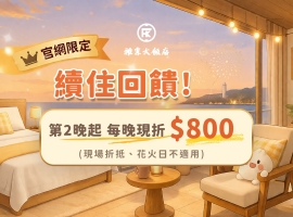 【官網限定・續住回饋】第二晚起每晚現折 $800(花火日除外,現場折抵) Posted 2026-04-09